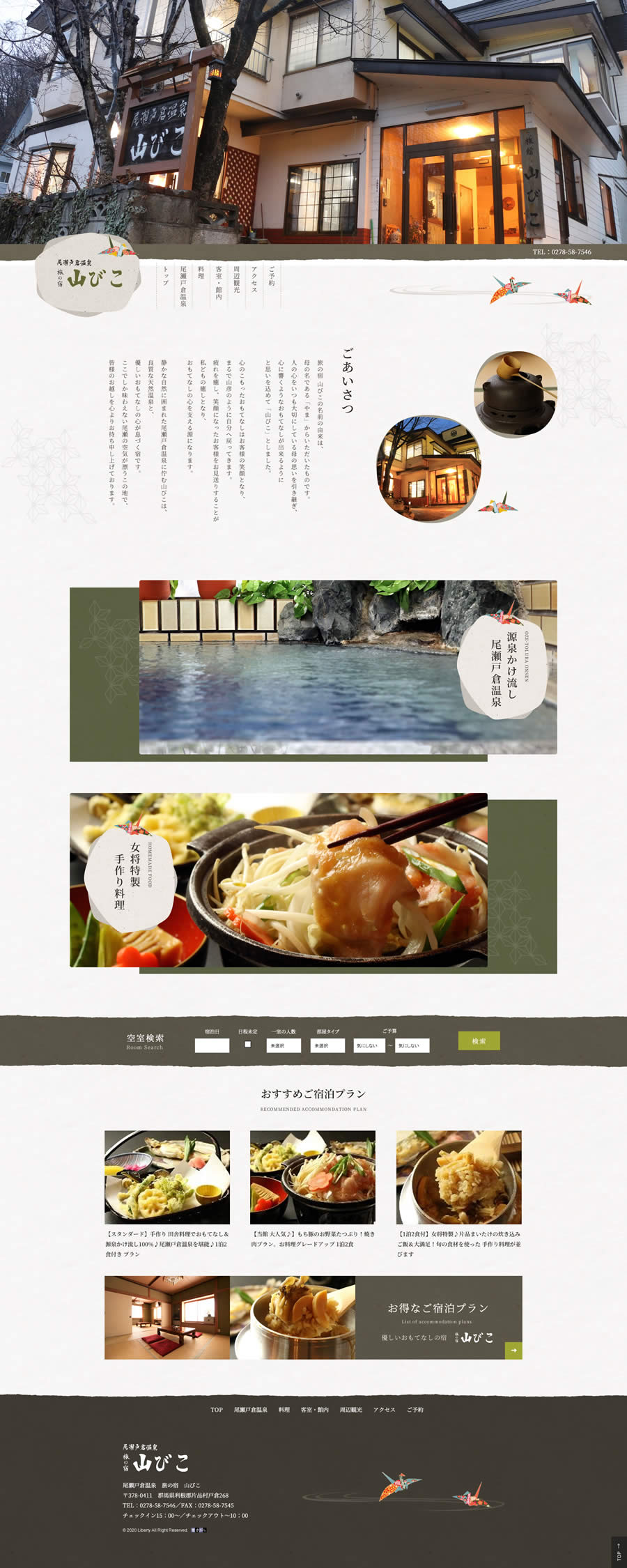 静かな自然に囲まれた尾瀬戸倉温泉に佇む女将の手作り料理が楽しめるお宿様