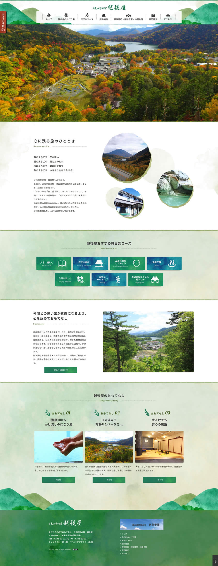 日光の奥座敷湯元温泉の源泉ちかくの山に囲まれたお宿様
