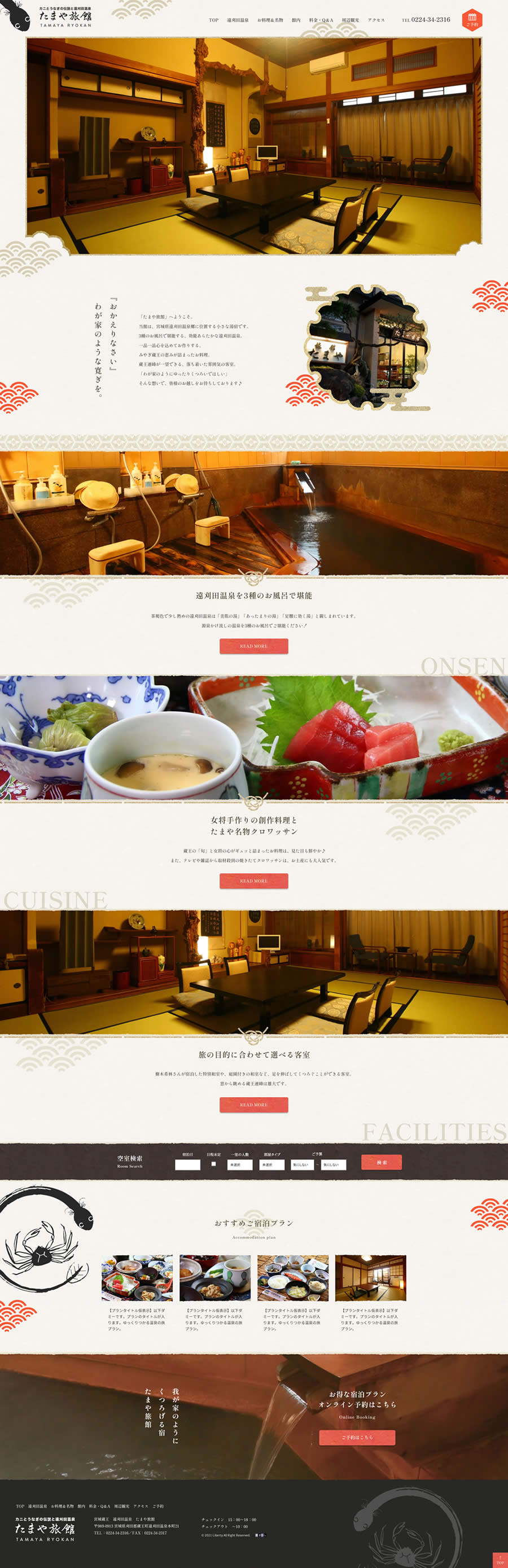 みやぎ蔵王の恵みが詰まったお料理の楽しめるカニとウナギの伝統の宿様