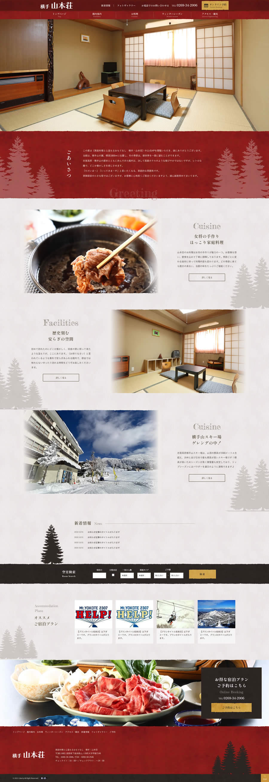 志賀高原横手山スキー場ゲレンデの中にある家庭料理のおいしいお宿様