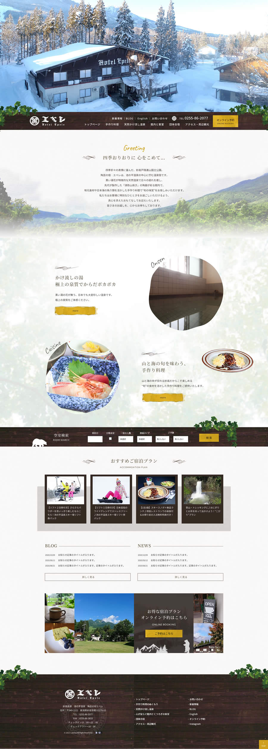 池の平温泉の中心に佇む黒い湯花が特徴的な天然温泉のお宿様