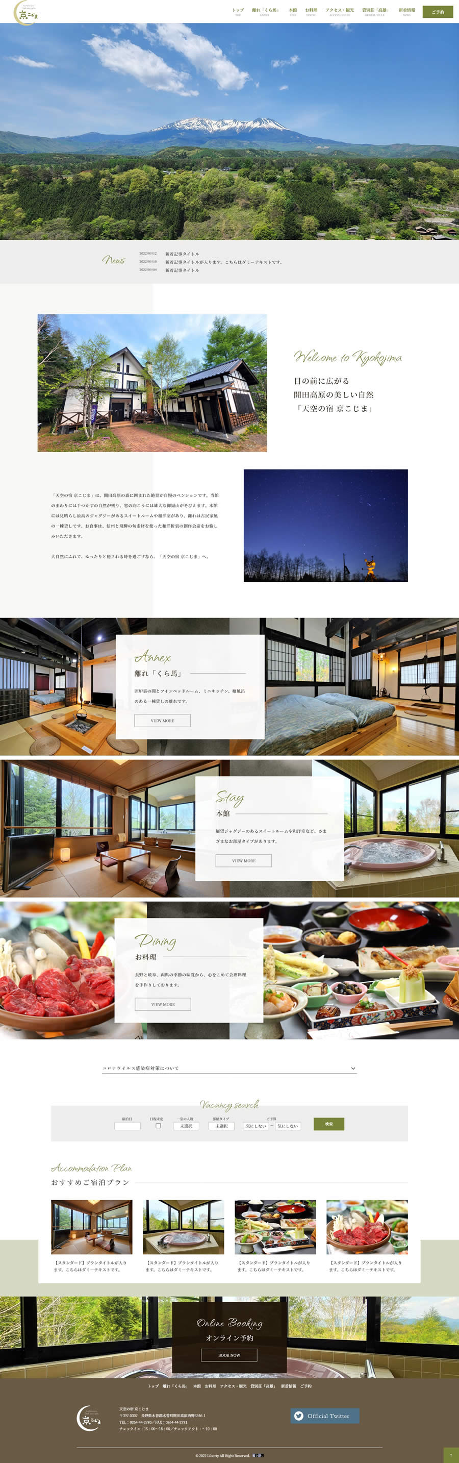 展望ジャグジーのあるスイートルームもある森に囲まれた標高1550mからの絶景が自慢のお宿様