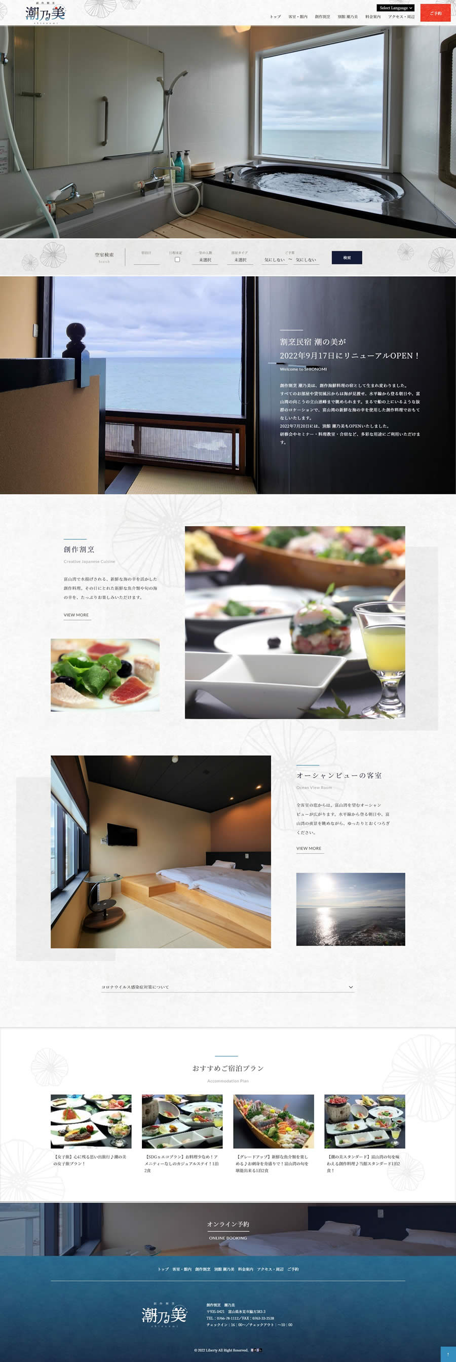すべてのお部屋や貸切風呂からは海が見渡せる創作海鮮料理のお宿様